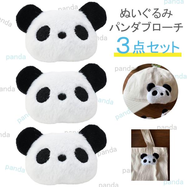 ブローチ パンダ ぬいぐるみブローチ 3点セット ジャイアントパンダ ピンブローチ パンダグッズ 雑貨 かわいい 動物 アニマル ギフト 贈り物
