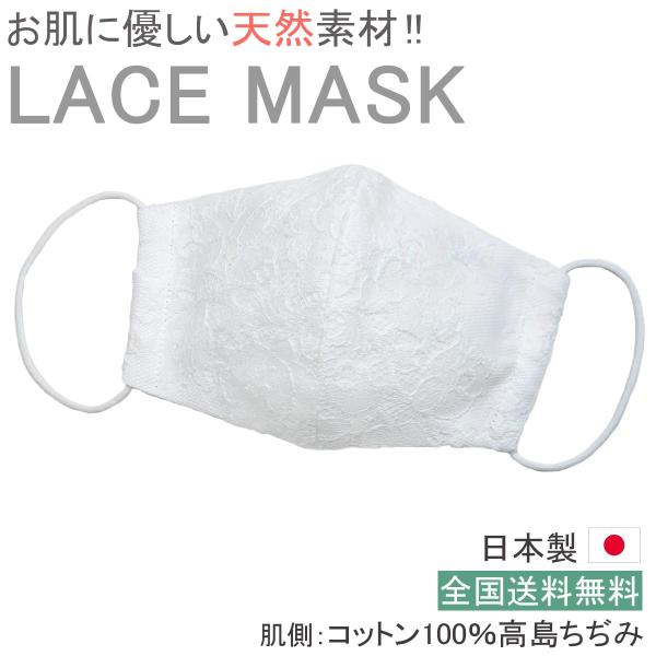 布マスク 日本製 レースマスク ウエディング おしゃれ 白 女性用 花嫁マスク ブライダル 立体 リバーレース 高島ちぢみ 布 綿 上品 ホワイト