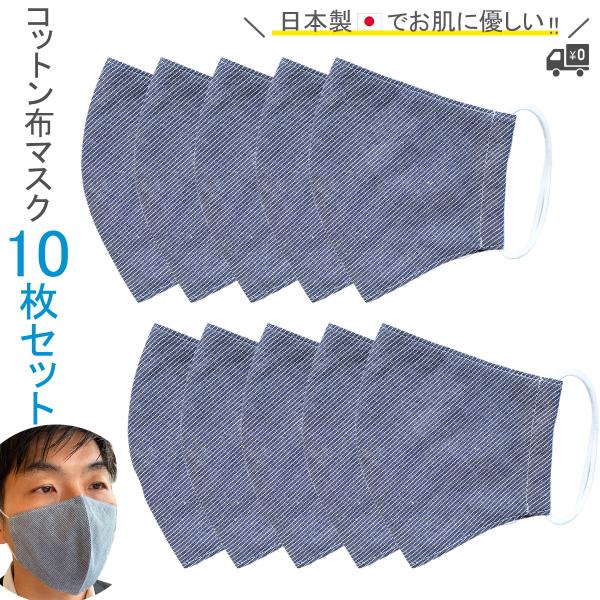 布マスク 日本製 夏用 大きめ 洗える 高島ちぢみマスク 立体型 就寝マスク おしゃれ メンズ 家庭用 立体 マスク 女性 薄手 淡い紺ストライプ