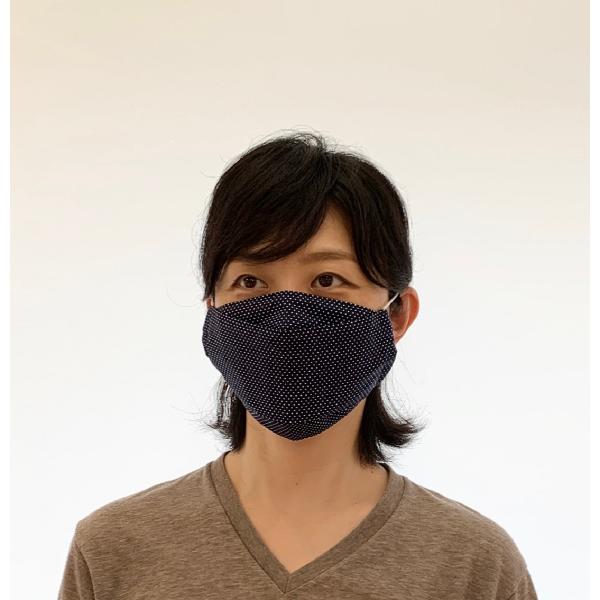 布マスク 日本製 大臣マスク おしゃれ 折り返し 大きめ メンズ 洗える 舟形 立体型 マスク 綿 布 女性 コットン 軽量 保湿 天然素材 紺水玉
