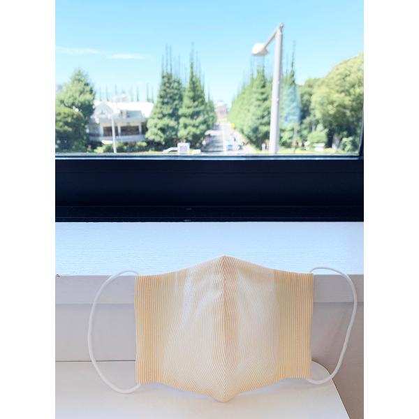 布マスク 日本製 ノーズワイヤー入り マスク おしゃれ 立体 マスク 小さめ かわいい 女性 綿 布 天然素材 敏感肌 黄色ストライプ柄 コットン