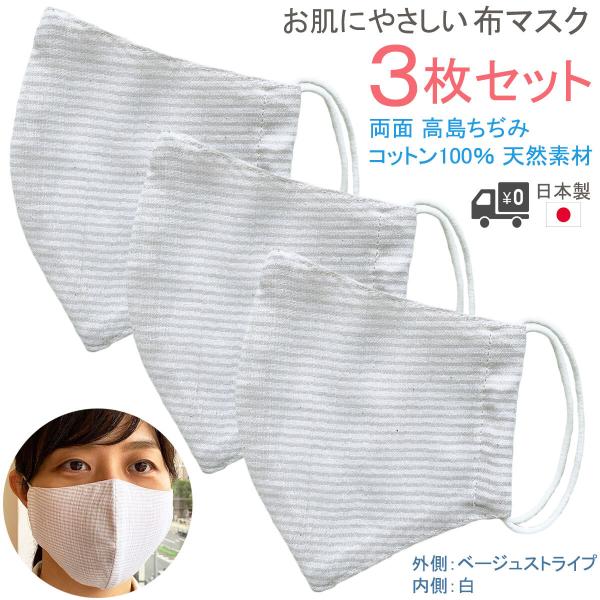 布マスク 日本製 立体型 コットンマスク 高島ちぢみマスク メンズ 大きめ 女性 夏 快適 洗える 涼しい インナーマスク 就寝 ベージュストライプ
