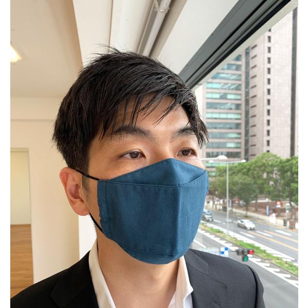 日本製 布マスク おしゃれ 大臣マスク 洗える コットン高島ちぢみ 舟形 大人用 敏感肌 ビジネスマスク 深い青緑 オックス 天然素材 Y485