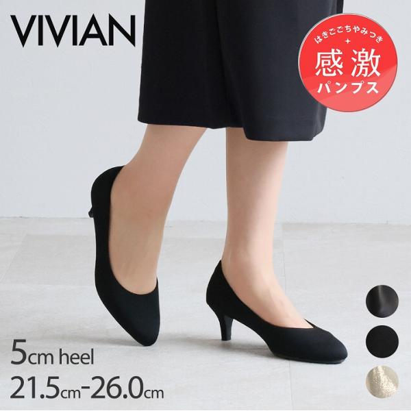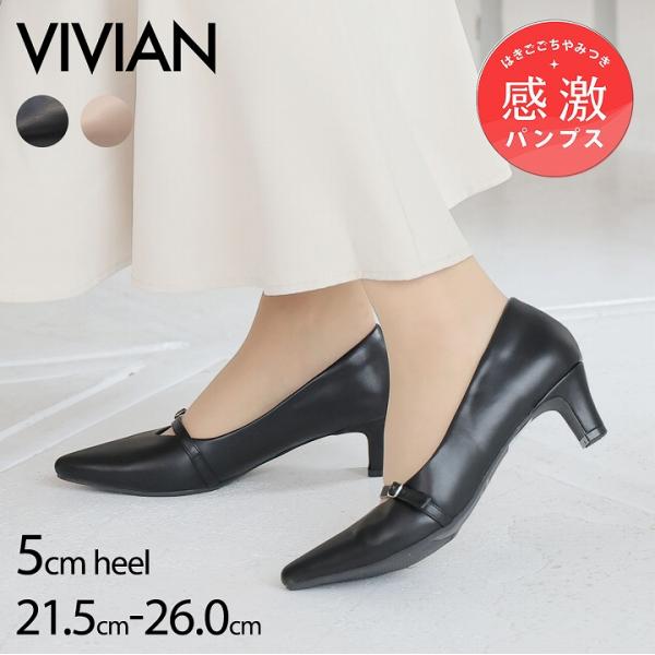 パンプス ストラップ 走れる パンプス 歩きやすい 痛くない Vivian セパレート チャンキーヒール ポインテッドトゥ ブラック 通勤 結婚式 V4255AL