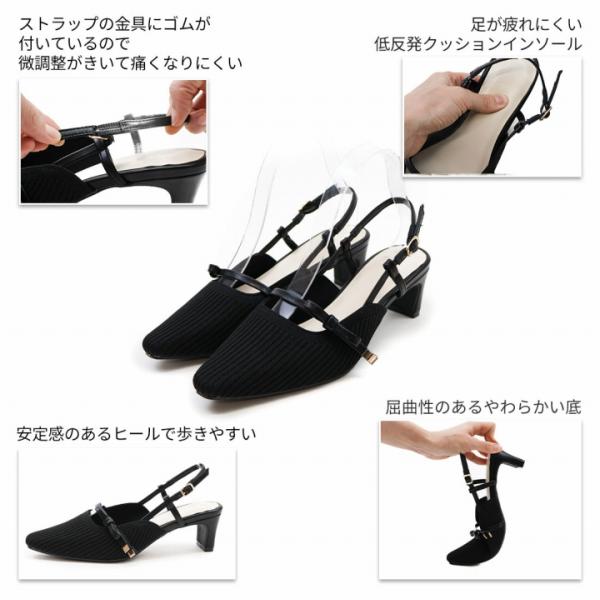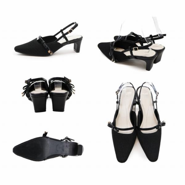 バックストラップ ニット パンプス リボン スリングバック セミスクエアトゥ 5cm プレートヒール V3280AL