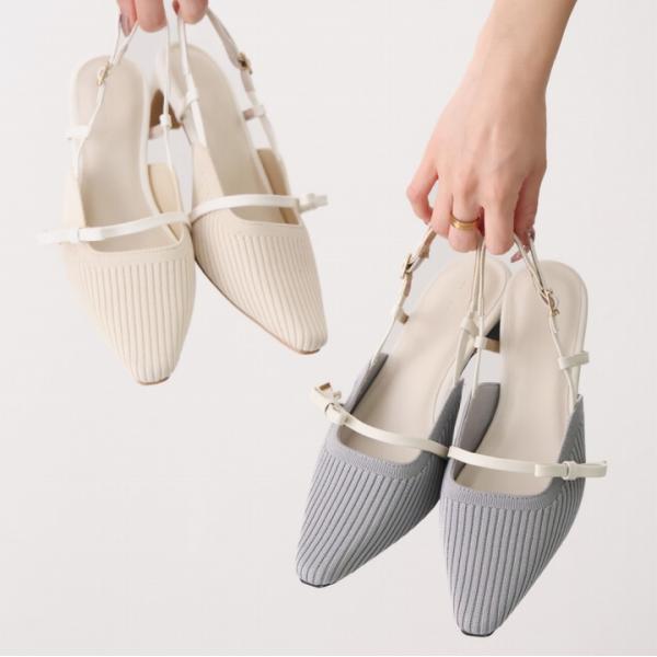 爆買 ミュール パンプス レディース バックストラップ ニット パンプス リボン スリングバック セミスクエアトゥ 5cm プレートヒール V3280AL ZOZO 通勤 通学
