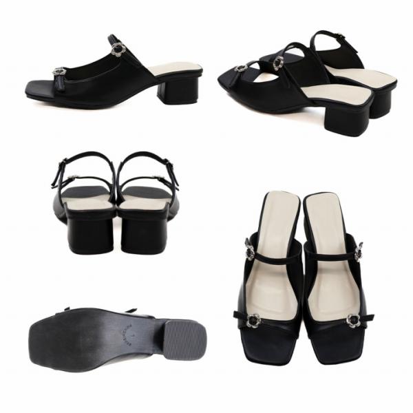 予約 VIVIAN フラワーバックル サンダル レディース ミュール つっかけ ストラップ 4cm ローヒール V33010SM