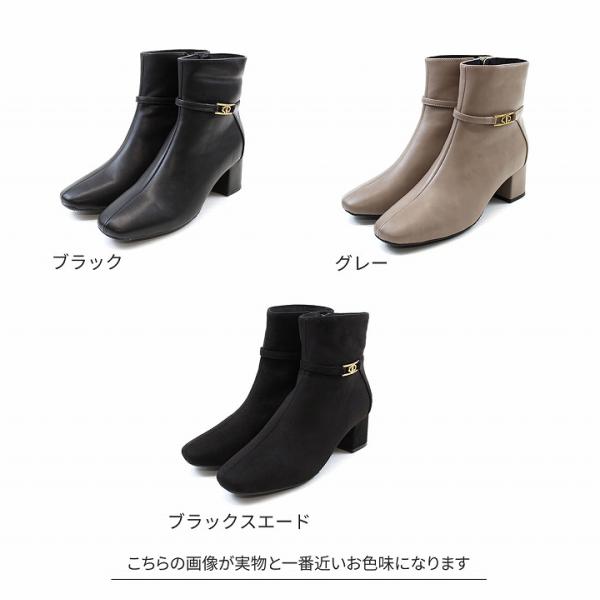 ブーツ レディース チャーム ショートブーツ モチーフ チャンキーヒール 5.5cm 歩きやすい 疲れない ブラック 黒 ストレッチブーツ ZOZO V6285AW