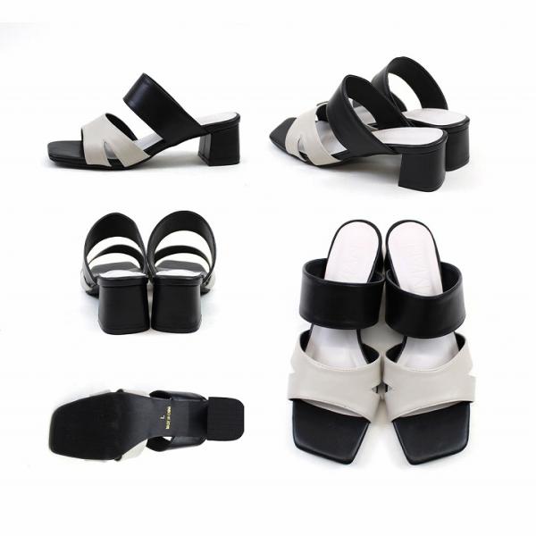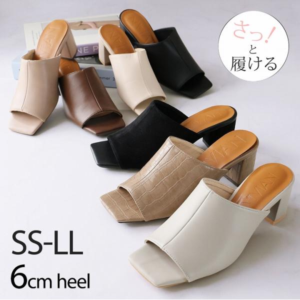 サンダル レディース ミュール チャンキーヒール 5cm ヒール スクエアトゥ つっかけ ブラック ベージュ V65105SM 爆買