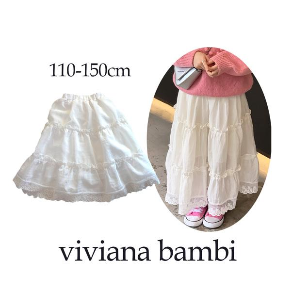 子供服 フリルレース ロングスカート レーススカート ボトムス ロングスカート 100 110 120 130 140