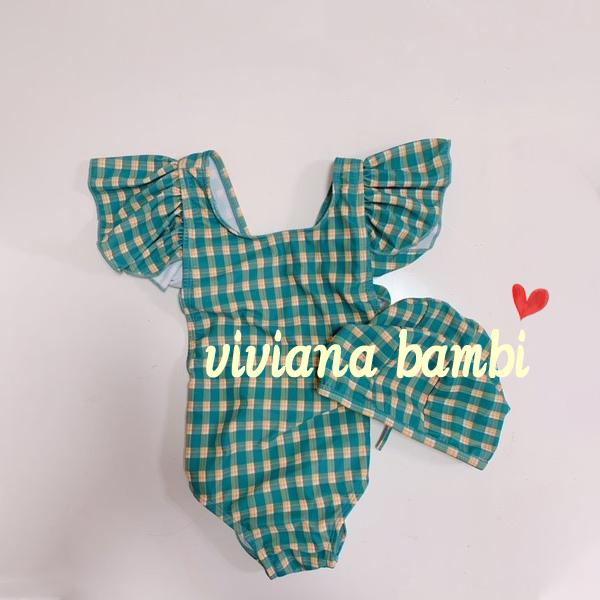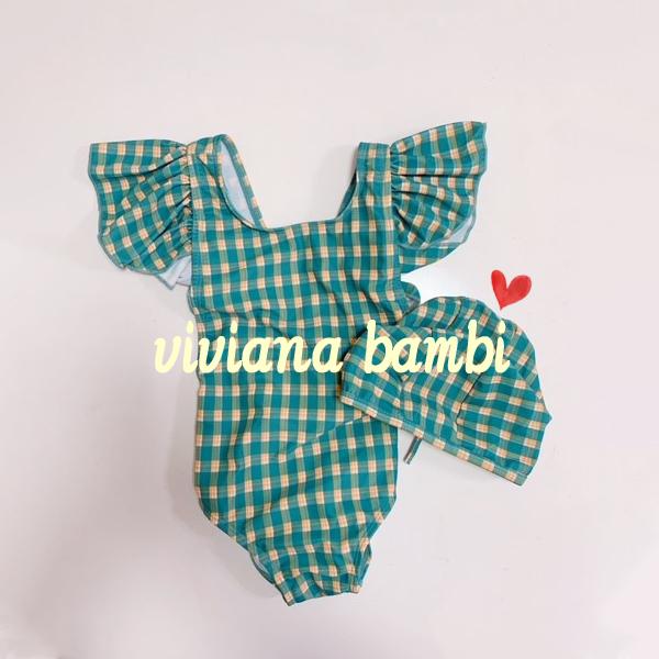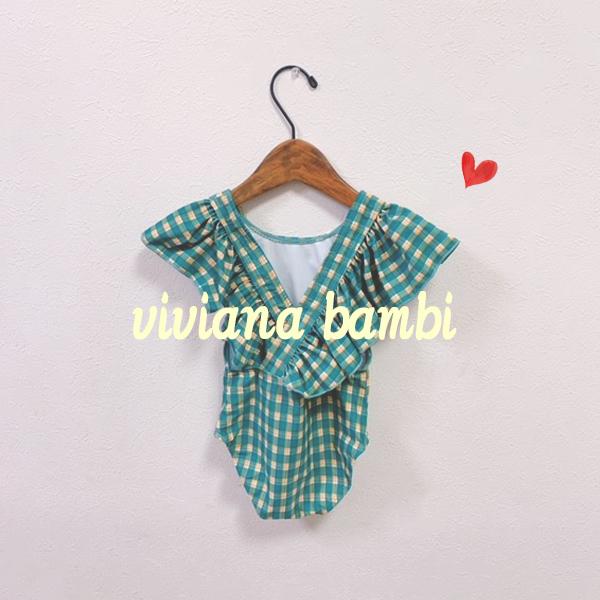 子供服 水着 プール用品 チェック フリル ワンピース水着