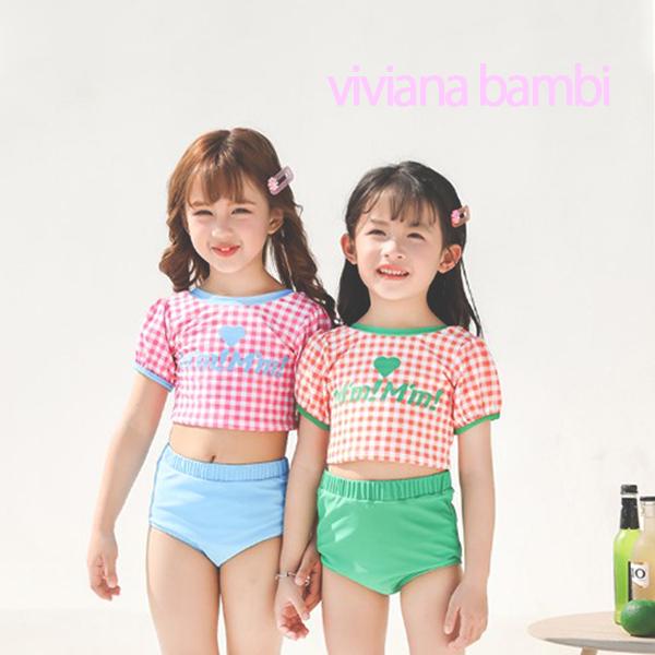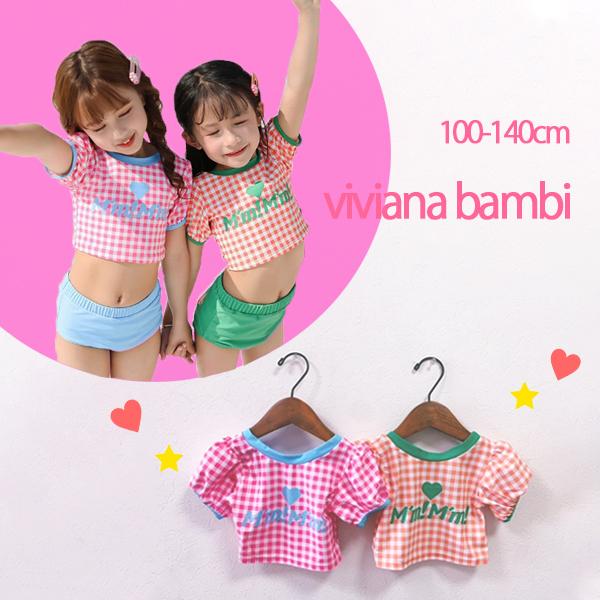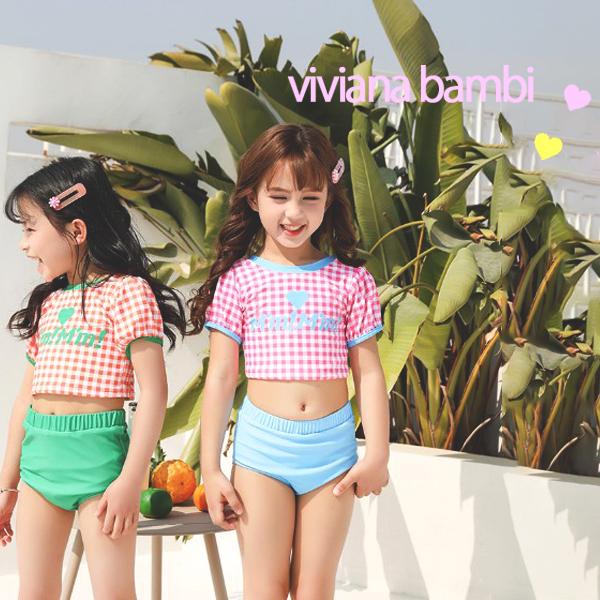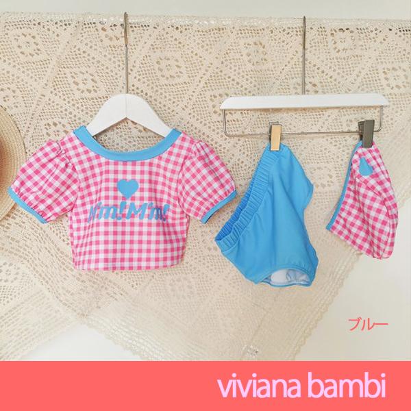 子供服 水着 チェック柄ポップセパレート水着 女の上下セット 3点セット プール用品 水着 100 110 120 130 140