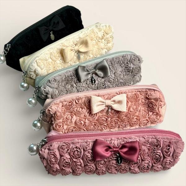 5色展開 ミニローズペンケース 筆箱 薔薇 ローズ柄 バラ ばら 眼鏡ケース シニアグラスケース ファスナーポーチ レディース コスメポーチ