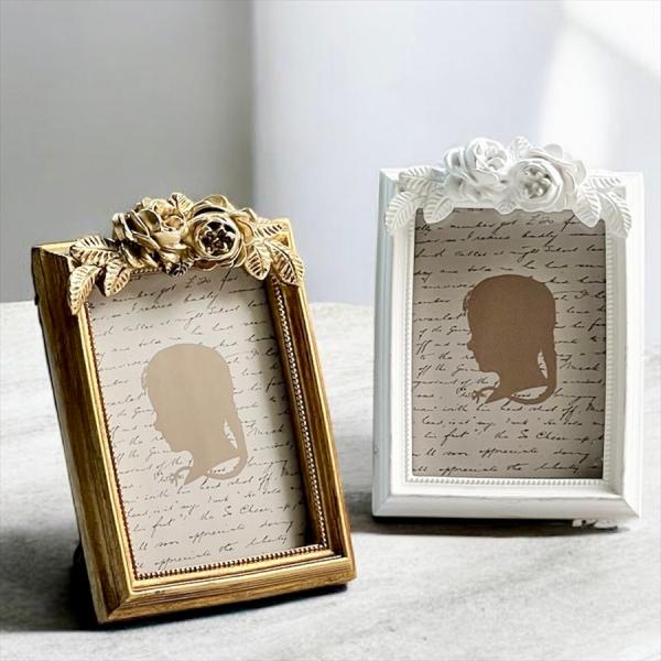 写真立て ローズ フォトフレーム 2色展開 フォトスタンド インテリア ミニ 小さい シャビーシック おしゃれ 可愛い ロココ アンティーク調