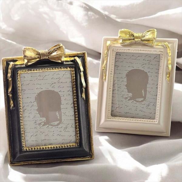 フォトフレーム リボン ガーランド 写真立て 長角 ブラック ピンクベージュ おしゃれ 可愛い フォトスタンド 英国 姫系 プリンセス 贈り物 ギフト