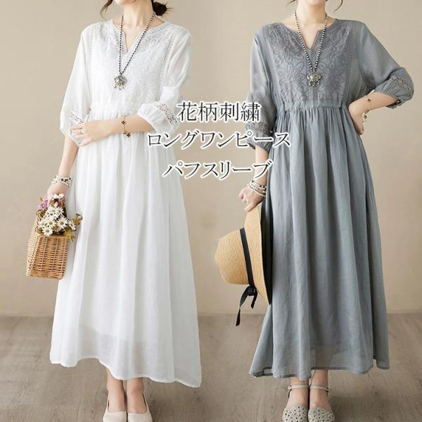 レディース ワンピース ワンピ ロングワンピース シンプル かわいい きれいめ おしゃれ 涼しげ カジュアル 花柄 体型カバー