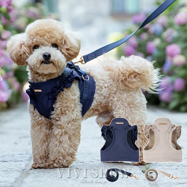 犬用 ハーネス リード セット フリル リード付き 小型犬 小型 子犬 チワワ 女の子 ペット服