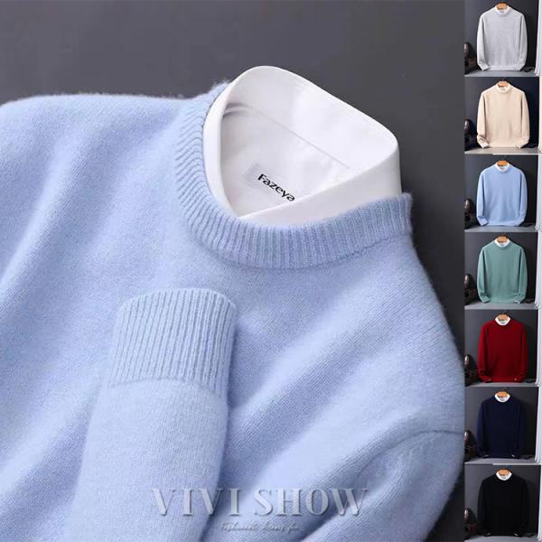 ニットセーター メンズ 長袖 ニット セーター クルーネック 丸首 トレーナー トップス シンプル 無地 秋冬 防寒 暖かい あったか