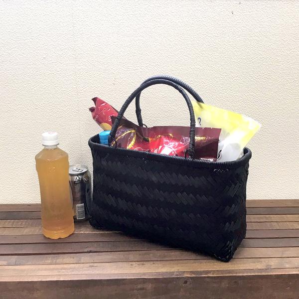 かご 即納可 バスケット かごバッグ 湯かご 温泉 旅館 買物カゴ 9110BK w35 d16 h23(37)cm