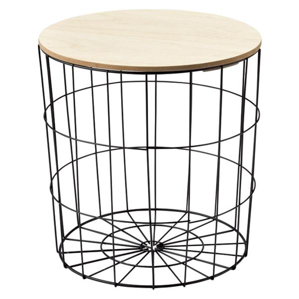 【期間限定価格】かご カゴ バスケット 収納 テーブル付きバスケット 蓋付き 2Way おしゃれ サイドテーブル ワイヤーバスケット 小物収納 φ40 h40cm