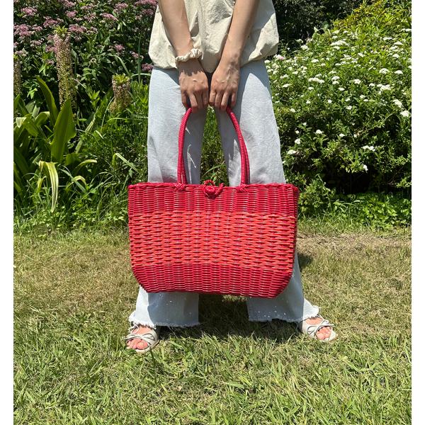 かごバッグ オリジナル 全6色 ワイド ゆったり たっぷり収納 PP 肩掛け カジュアル かわいい エコバッグ SF-90RE w46 d16 h30(55)cm