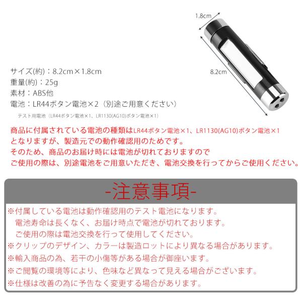 ※商品に付属されている電池の種類はLR44ボタン電池×1、LR1130(AG10)ボタン電池×1となりますが、