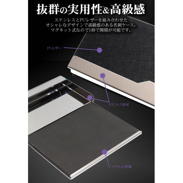 名刺入れ メンズ レディース マグネット式 PUレザー 高級感 ハードケース ステンレス 1秒開閉