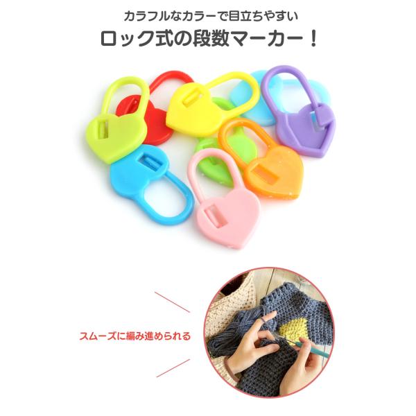 段数マーカー ロック式 90個セット ハート 段数リング ステッチマーカー マーカー 段かぞえ かぎ針 かわいい 編み物 ハンドメイド DIY 手芸 マーキング 目立つ