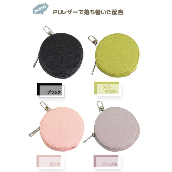サークルポーチ ミニ マルチケース 丸形 かわいい カラビナ付き ミニポーチ パステル サブバッグ おしゃれ マルチ ラウンドポーチ ラウンド シンプル PUレザー