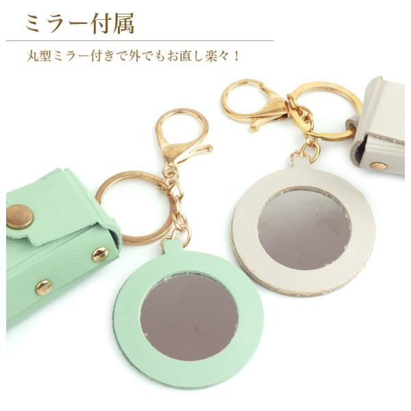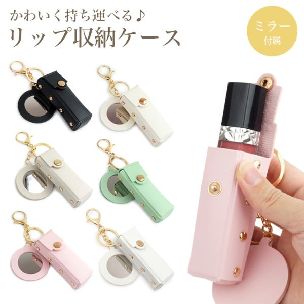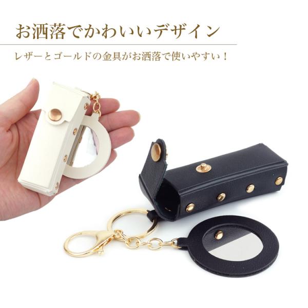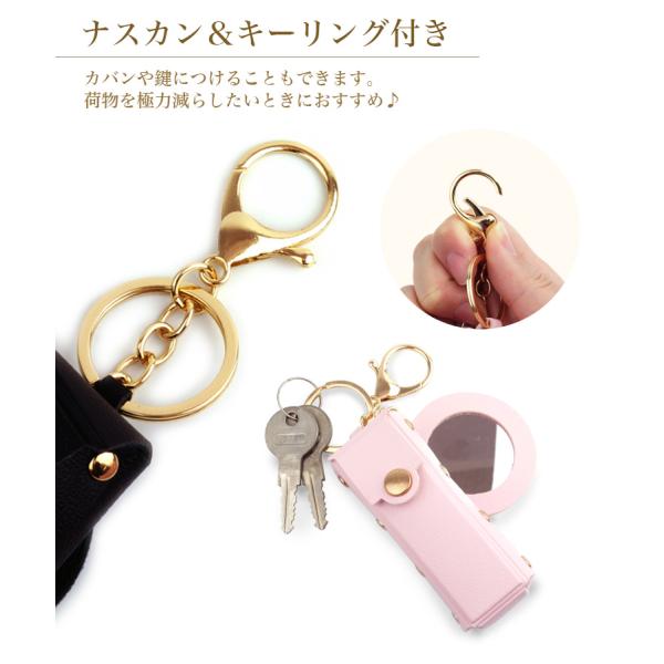 リップ ケース ミラー 付き ホルダー コンパクト 小物 収納 ミニ ポーチ 口紅 メイク 化粧品 持ち運び リング 携帯