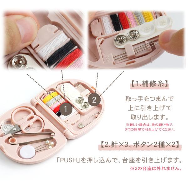 ソーイングセット ミニ 携帯 裁縫セット トラベル 小さい ケース 旅行 手芸 コンパクト 手のひらサイズ 緊急補修 便利グッズ 補修糸 最小限
