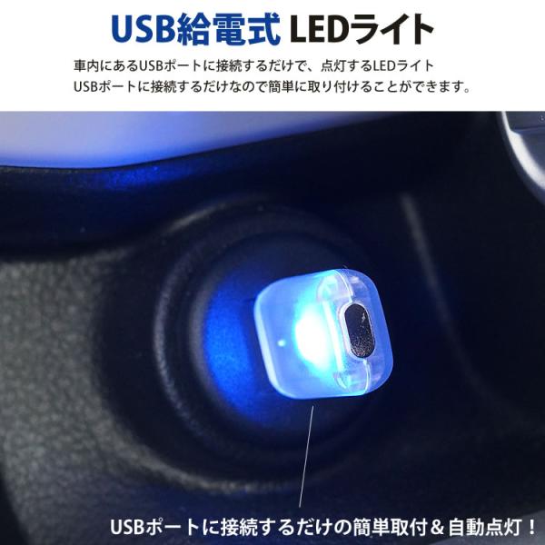 車内にあるUSBポートに接続するだけで、点灯するLEDライト