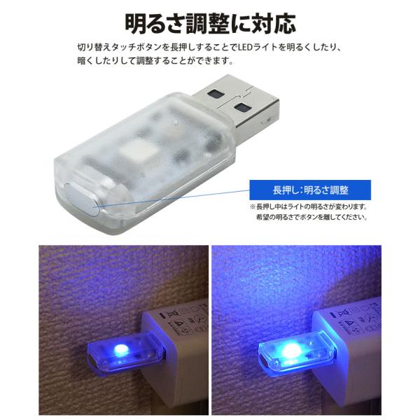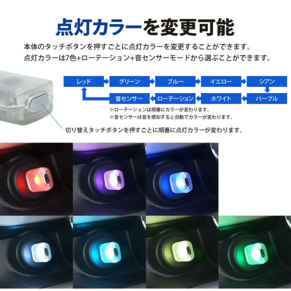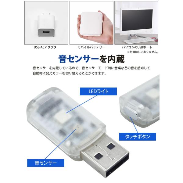 USB LED ライト 発光カラー 7色 音センサー 明るさ調整 車内 USB給電 簡単取付 小型 コンパクト