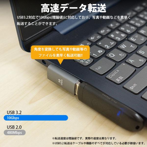 USB 3.2 変換アダプタ L型 L字型 USB Type-A オス メス タイプ A 変換コネクタ 角度 90度 角度変換 データ転送 PR-USBA-TW2【メール便 送料無料】