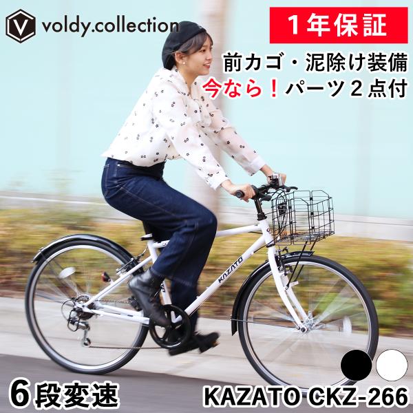 カゴ付きクロスバイク 自転車 26インチ 6段変速 LEDライト・カギ付き フルフェンダー(泥除け)セット 街乗り 女性 通勤 通学 お買い物 カザト KAZATO CKZ-266