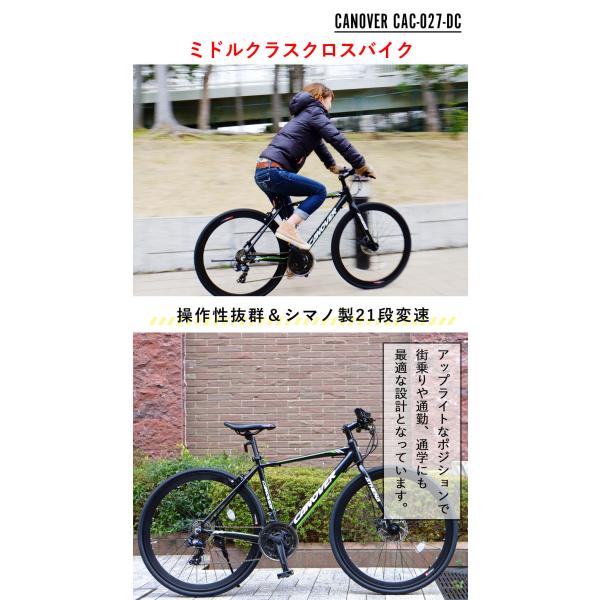 クロスバイク 自転車 700c 700×28C 27インチタイヤ相当 シマノ21段変速 軽量 アルミフレーム フロントディスクブレーキ カノーバー CANOVER CAC-027-DC ATHENA
