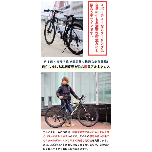 自転車 クロスバイク 軽量 アルミフレーム 21段変速