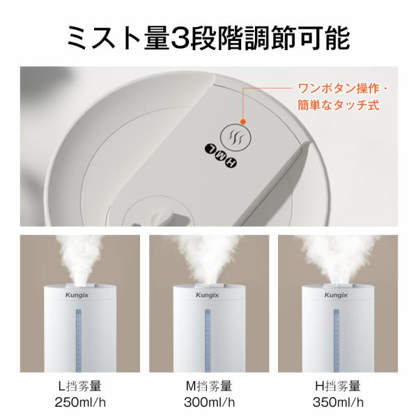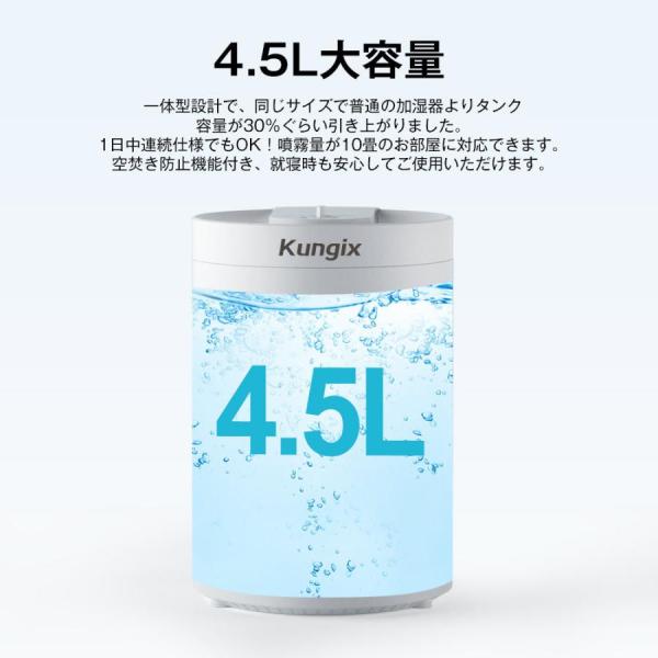 超音波式 加湿機 大容量4.5L コンパクト 紫外線 UV除菌 焚き防止 次亜塩素酸水対応 節電 噴霧3段調節 湿度調整 超静音 アロマ対応