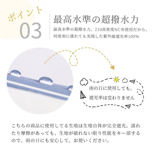 生地素材:210T高密度インパクトクロス(強撥水性、UV遮蔽率99.99%、UPF50+)