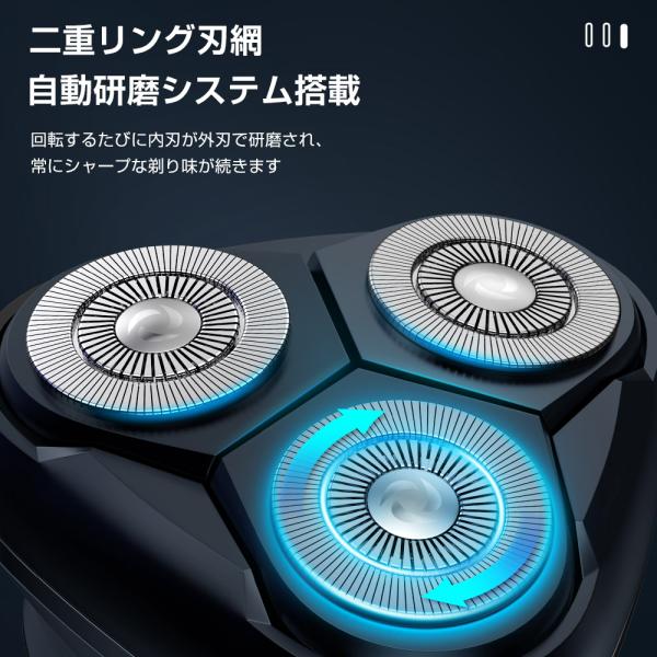 髭剃り メンズシェーバー 電気シェーバー シェービング 電動 充電式 IPX7防水 男性 髭 3枚刃 洗浄 ムダ毛 風呂剃り 回転式 丸洗い