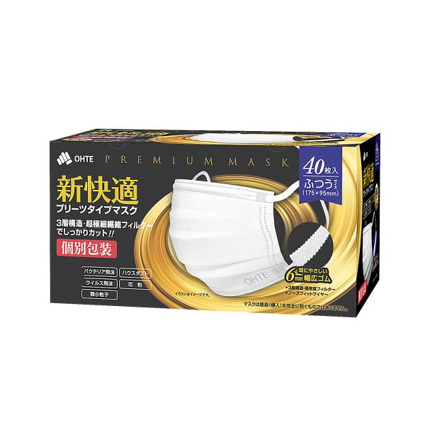 不織布マスク ふつう 個別包装 40枚入 x 1箱 40枚 ふつうサイズ プリーツマスク 新快適 使い捨て 耳が痛くない ohte 新快適 マスク 送料無料 大容量