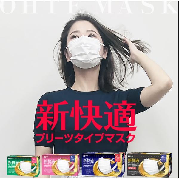 不織布マスク 50枚 ふつう マスク 50枚入 x 1箱 50枚 ふつうサイズ プリーツマスク ohte 新快適マスク 新快適 使い捨て 耳が痛くない 送料無料 大容量