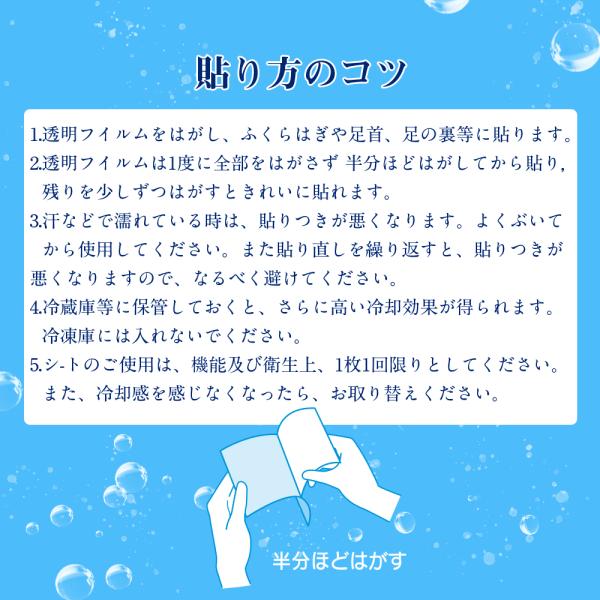 5シートのご使用は、機能及ひ衛生上、1枚1回限りとしてください。また、冷却感を感じなくなったら、お取り替えください。