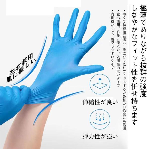 ニトリル手袋 100枚 x 2箱 200枚 セット SS S M Lサイズ ブルー 青 食品衛生適合 ニトリルゴム手袋 使い捨て手袋 調理 ラテックスフリー パウダーフリー