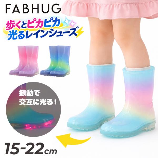 ファブハグ キッズ 長靴 レインブーツ 光る LED 子供用 FUBHUG 歩くと光る ながくつ 長くつ 子供靴 15cm 16cm 17cm 18cm 19cm 20cm 21cm 22cm /576151【Raki22】