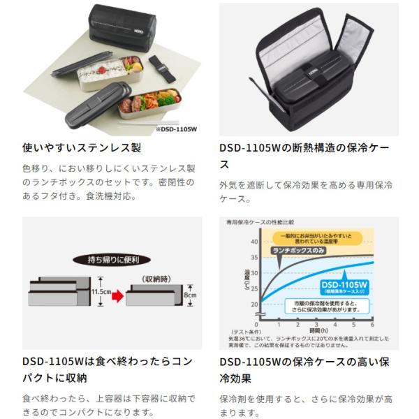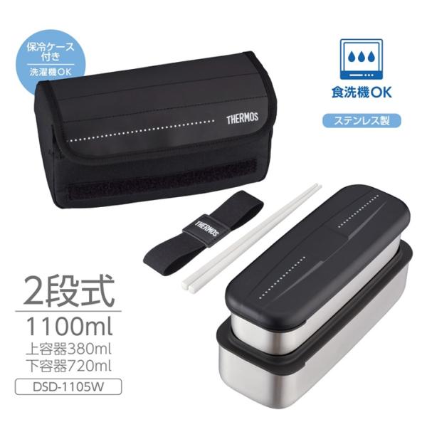 サーモス お弁当箱 ステンレス製 THERMOS フレッシュ ランチボックス 箸付き 上下2段式 保冷ケース付き コンパクト収納 食洗機対応 ブランド 贈り物 /DSD-1105W