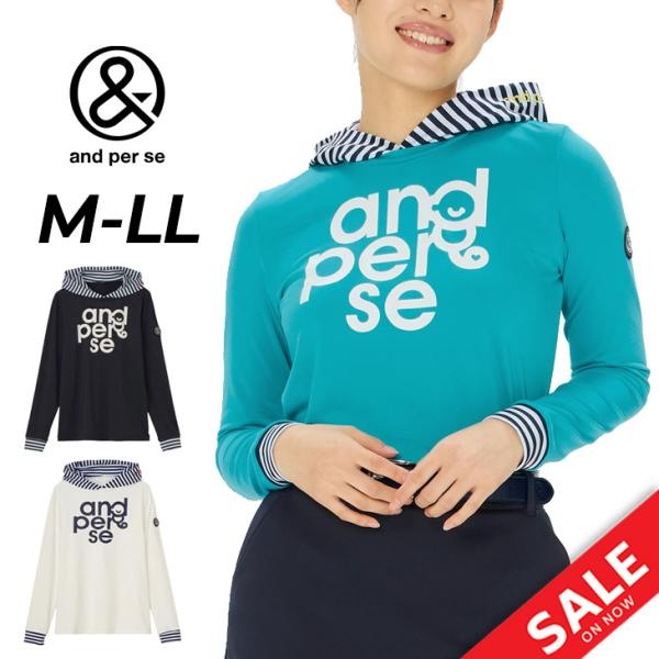 アンパスィ レディース 長袖シャツ レイヤードデザイン ゴルフウェア and per se GOLF ボーダー柄 スムース フーディーシャツ 女性用 ゴルフシャツ /AFS9215X8