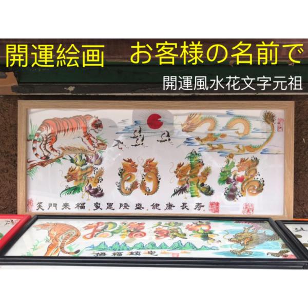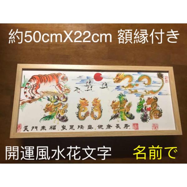 開運絵画 開運風水花文字 お客様名前を書き 誕生日 米寿 結婚 出産 贈り物最適 約50cmX22cm額付き