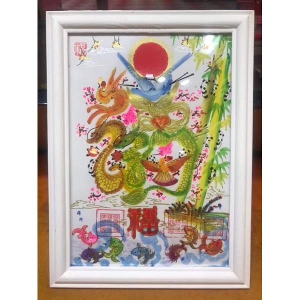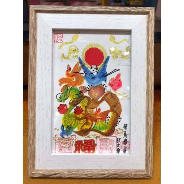 2Lサイズ額縁付き 萬福花文字 花鳥字 花鳥文字 花鳥画 龍鳳字 龍鳳文字 吉祥花文字 開運花文字 お客樣の名前を書く 直筆花鳥字