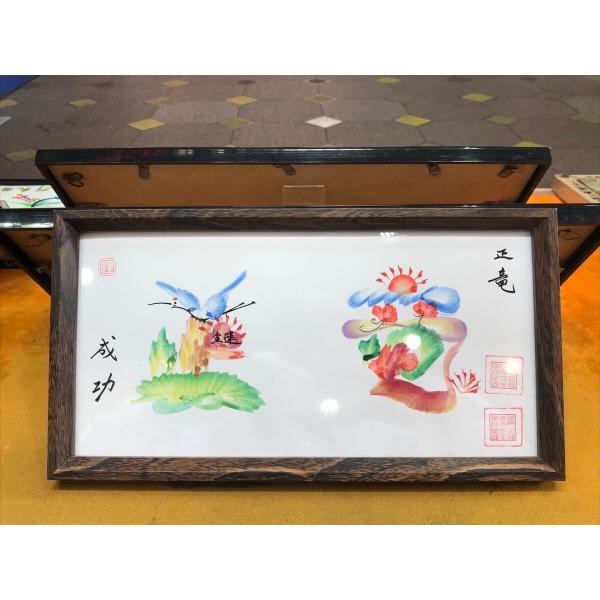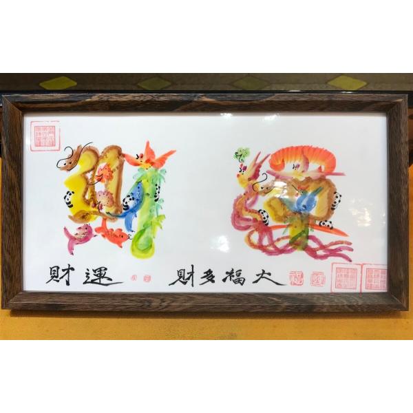 額付き開運風水花文字、お客様好きな文字を書きます、命名書 誕生日 結婚 開店 就職 米寿 新発売などに贈り物 プレゼント 中華街 お土産 最適最高